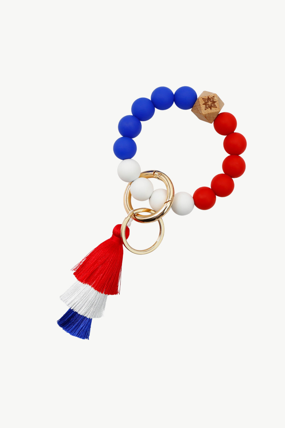 Red White and Blue Tassel Bead Wristlet Key Chain