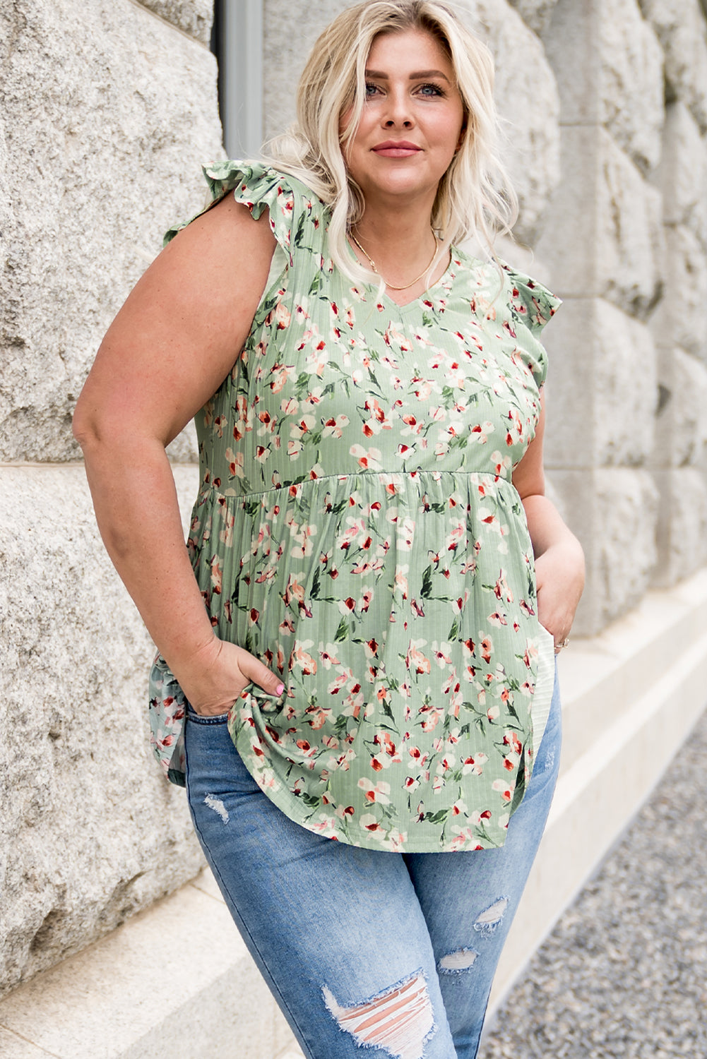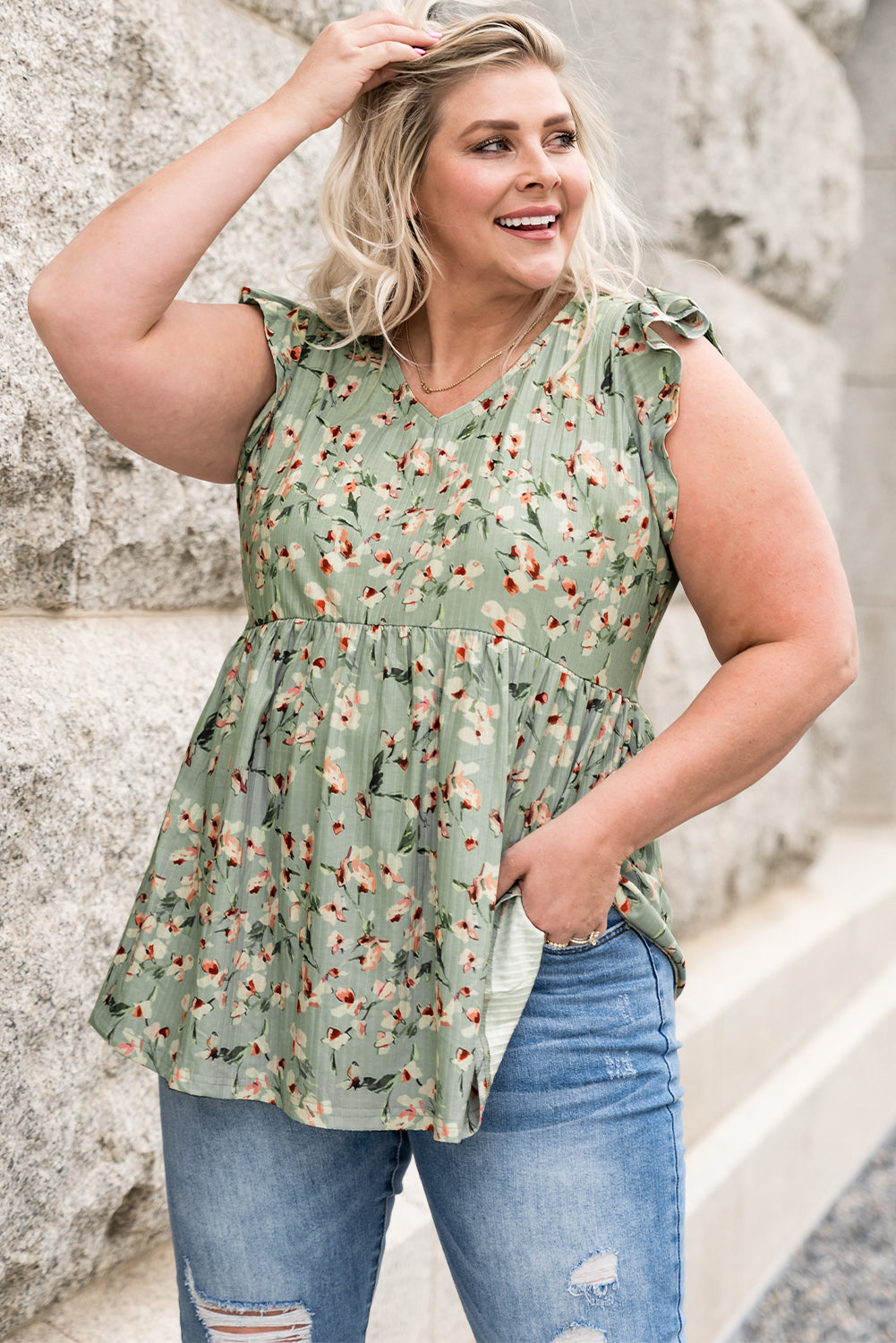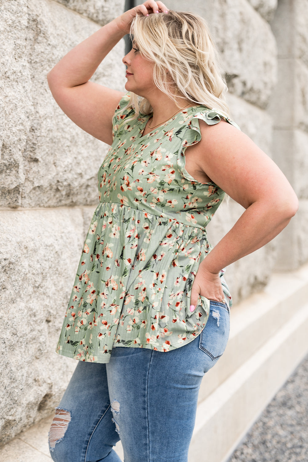 Plus Size Floral Flutter Sleeve Peplum Top